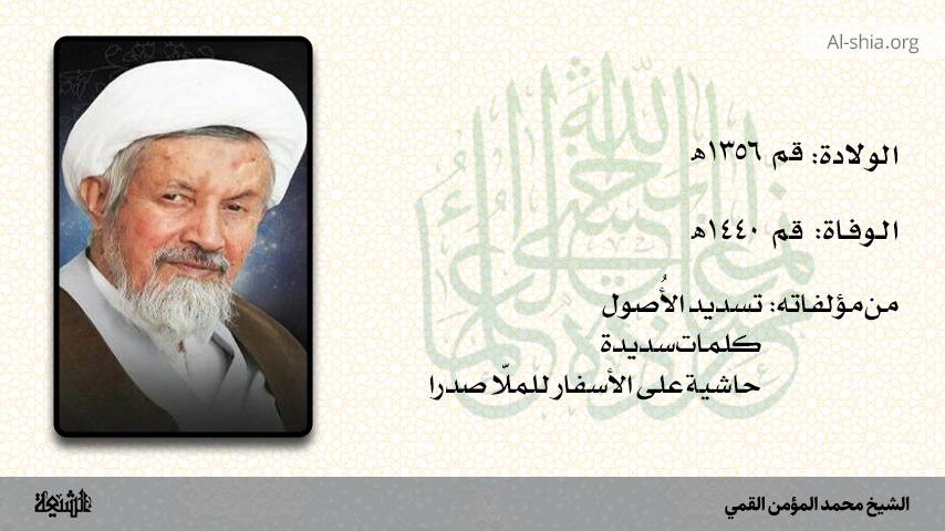 نبذة مختصرة عن حياة العالم الشيخ محمد المؤمن القمي ، أحد علماء قم ، رئيس مجمع فقه أهل البيت(عليهم السلام) ، مؤلّف كتاب «الولاية الإلهية الإسلامية أو الحكومة الإسلامية» .